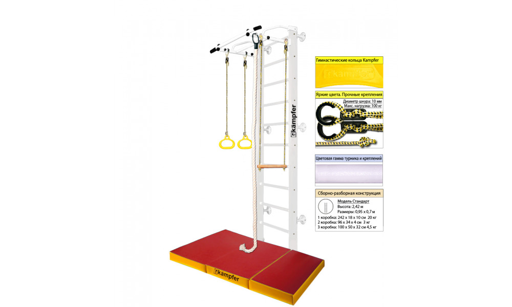 Шведская стенка Kampfer Helena Wall c матом №6 (№6 Жемчужный Стандарт белый турник c матом №6 красный/желтый)