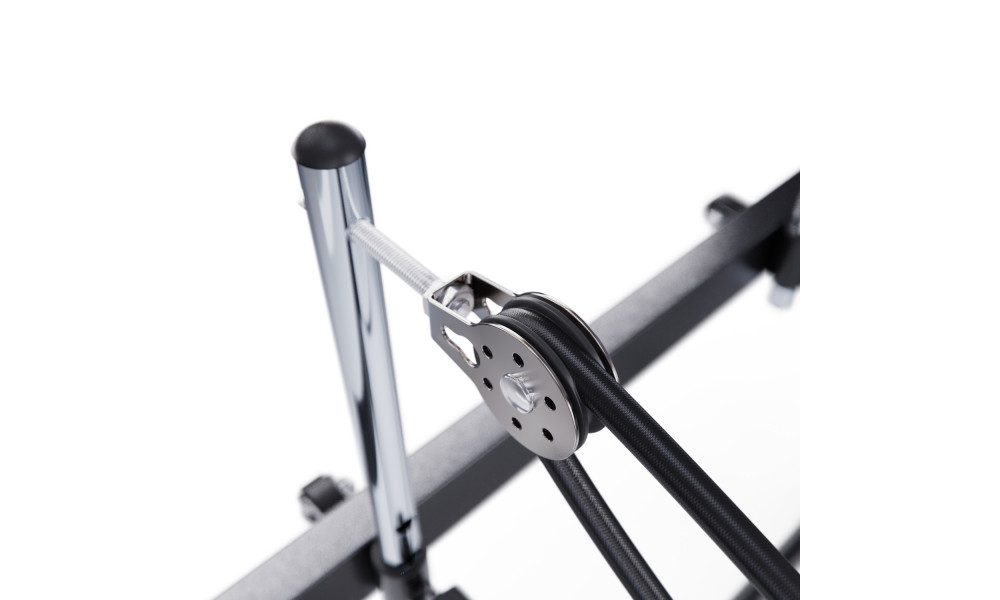 Реформер оснащён пятью пружинами для настройки уровня сопротивления и регулировкой поручня в 3-х положениях. Эспандеры расширяют диапазон упражнений, позволяя проработать все группы мышц. Размер подставки под ноги — 52 х 17,5 х 5,5 см — обеспечивает устойчивость и комфорт во время занятий. 2 защитные подкладки под ножки тренажера предотвращают скольжение и появление царапин на поверхности пола.